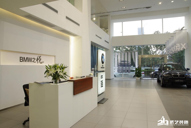 宝马4S店办公室设计装修主要体企业色-白色,在展厅中办公室中都以白色为主色,穿插淡绿,淡黄色等点缀空间,让创造员工办公舒适环境
